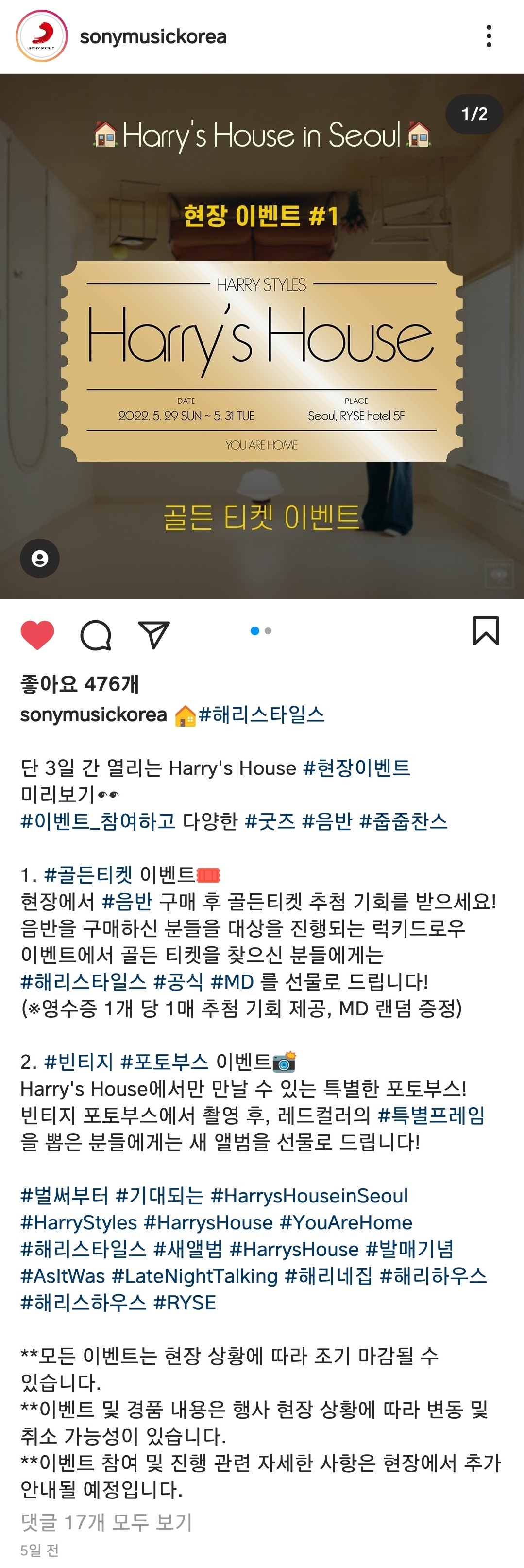 | 해리 스타일스 2022 Love On Tour 월드 투어 일정 (2) | 2022.06.08 |