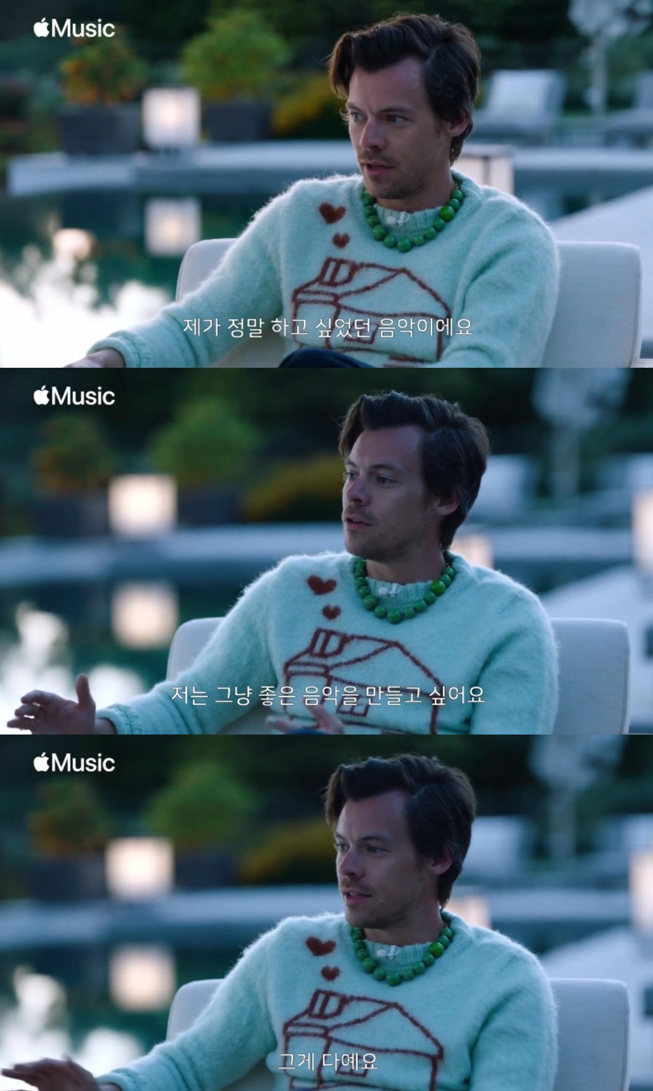 "[Harry's House을 녹음하는 것]에 대해 생각했어요. 누군가에게 음악을 만들 때 가장 좋았던 때로 돌아갈 수 있는지 물어본다면, 그들은 다른 앨범을 만들었을까요, 아니면 다른 투어를 했을까요? 저는 모든 사람들이 다른 앨범을 만드는 걸 선택했을 거 같아요. Harry's House을 녹음한 건 제가 자유롭게 무언가를 만들 수 있고 제가 만들고 있는 것에 대해 정말 기분이 좋은 순간이었어요."