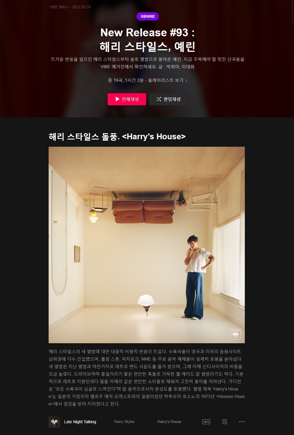 | 해리 스타일스 3집 Harry's House (feat.투데이쇼&스포티파이) (0) | 2022.05.20 |